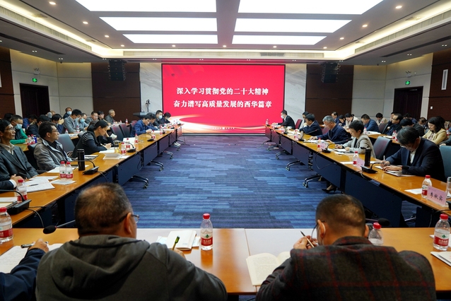 刘树根指出,学习宣传贯彻党的二十大精神是当前和今后一个时期的首要政治任务。要以“小学生”的态度,全面系统地学原文、读原著、悟原理,在学习内容上掌握好“广度”,在思考领会要有“深度”,在贯彻落实要有“效度”。他强调,要原原本本学习党的二十大重要文稿材料,拓展延伸学习党的最新理论文献,牢牢把握 “过去5年工作和新时代10年伟大变革的重大意义、新时代中国特色社会主义思想的世界观和方法论、以中国式现代化推进中华民族伟大复兴的使命任务、以伟大自我革命引领伟大社会革命的重要要求、团结奋斗的时代要求”等内容。他要求,学习贯彻党的二十大精神要落脚到指导实践、推动工作上,认真做好党的二十大精神的学习宣传,推动学校各项工作任务落实见效。全体干部师生要聚焦学校“十四五”规划的目标任务,一步一个脚印,稳扎稳打,全力推进学校高质量内涵式发展,为建设社会主义现代化国家、推进中华民族伟大复兴贡献力量。